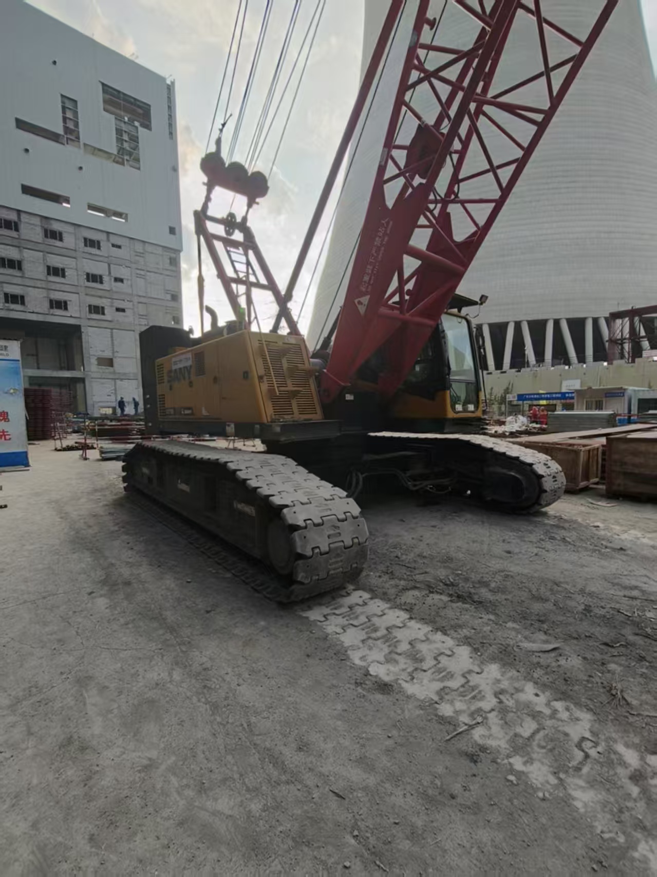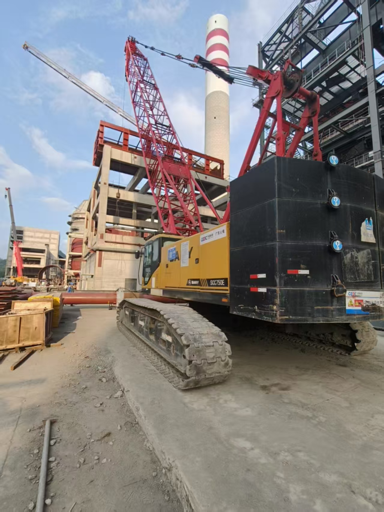 The SANY SCC750E Crawler Crane is a well-designed and high-performance heavy lifting machine, engineered for demanding construction environments. With advanced technology and an efficient power system, this crane provides impressive lifting capacity, with a maximum load of 75 tons, making it suitable for high-load operations in various challenging work conditions.